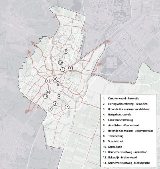 We hebben 13 plekken aangewezen waar verbeteringen nodig zijn om ze veiliger te maken. Hier gaan we de komende jaren aan werken: