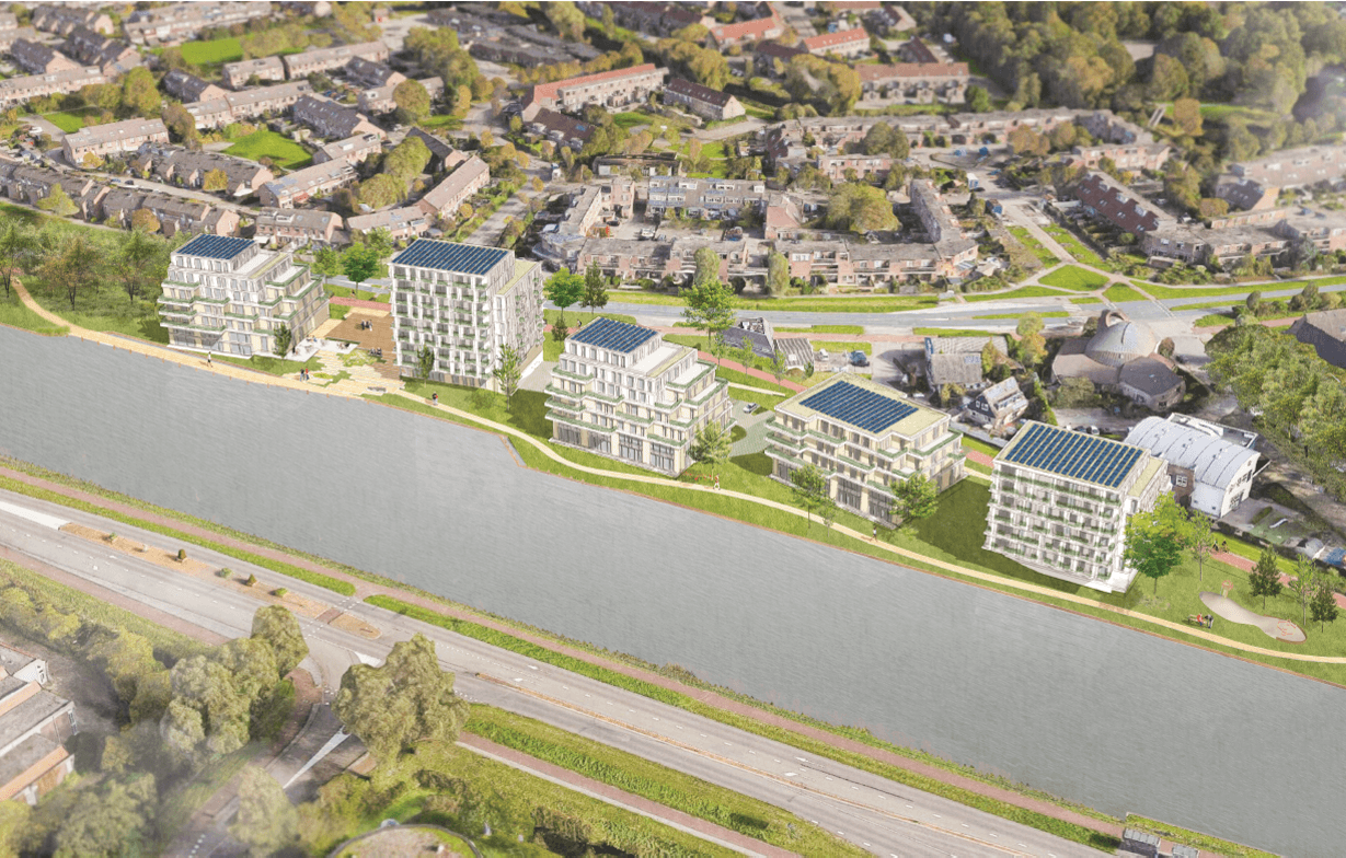 Het terrein aan de Kanaaldijk, waar vroeger Rijkswaterstaat zat, verandert in een groene woonlocatie aan het water. In totaal komen hier vijf woongebouwen met samen 160 appartementen. Dit past bij de ambitie van Alkmaar om compact en aan het water te bouwen.