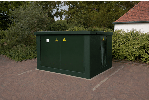 Het elektriciteitshuisje krijgt een dennengroene kleur. Hiernaast of hierboven ziet u hoe dat huisje er ongeveer uit komt te zien. Dit is een voorbeeld, dus het werkelijke huisje kan hiervan afwijken. De plaatsing van het huisje vindt plaats in 2027.