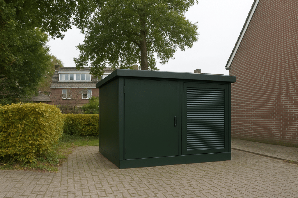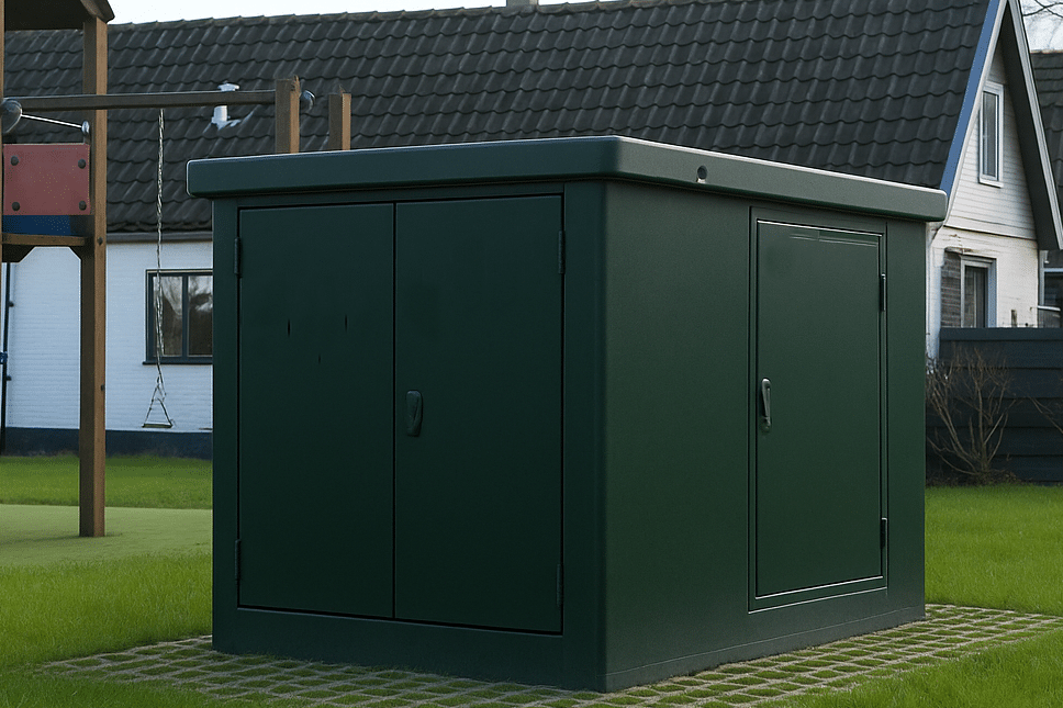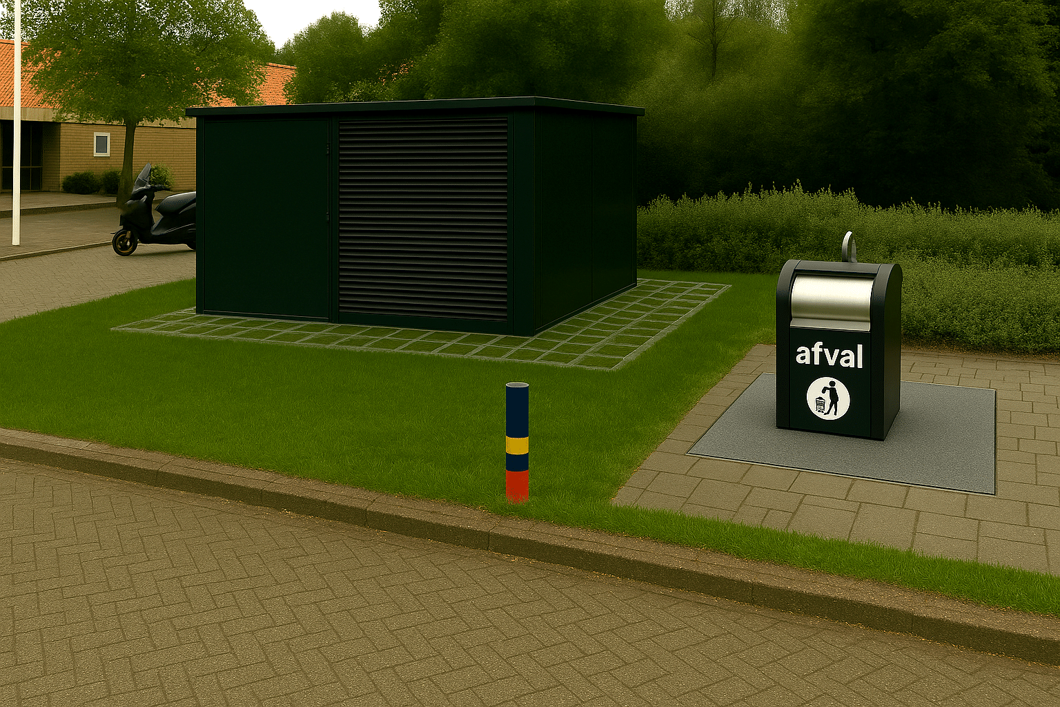 Binnenkort wordt er een nieuw elektriciteitshuisje geplaatst in de groene driehoek bij het parkeerterrein, vlak bij SV Koedijk. Het huisje krijgt de kleur dennengroen en een sedumdak. Rondom het huisje legt Liander grasroosters, zodat er gras tussen de tegels kan groeien en het goed past in het groen. Om het huisje mooi in het groen te laten opgaan, worden er drie losse heesters geplant. Binnenkort plaatsen we een nieuw elektriciteitshuisje vlakbij SV Koedijk van 2.98 bij 2.78 meter en 2.04 meter hoog. Het huisje komt in de eerste parkeerstrook te staan op de laatste twee parkeervakken. Het huisje krijgt de kleur dennengroen en een sedumdak.